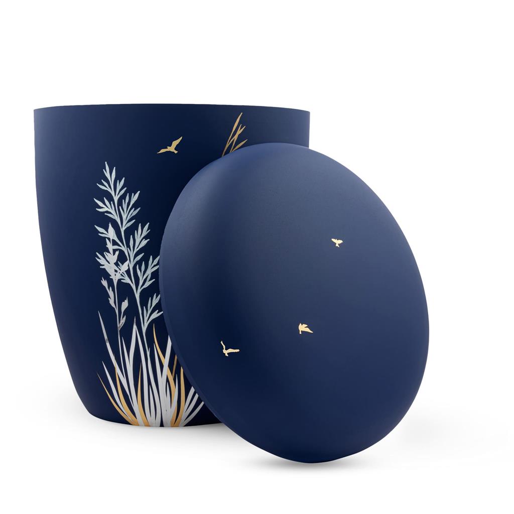 Naturstoffurne, atlantic-blue, "Gräser gold+weiß"