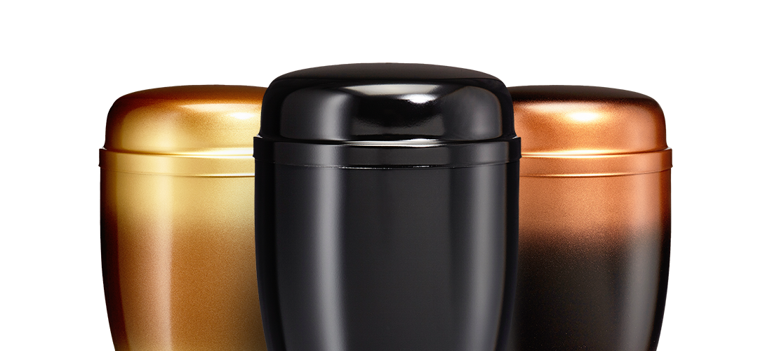Stahlblechurne, rot lackiert, Folien- emblem 'betende Hände', Goldband